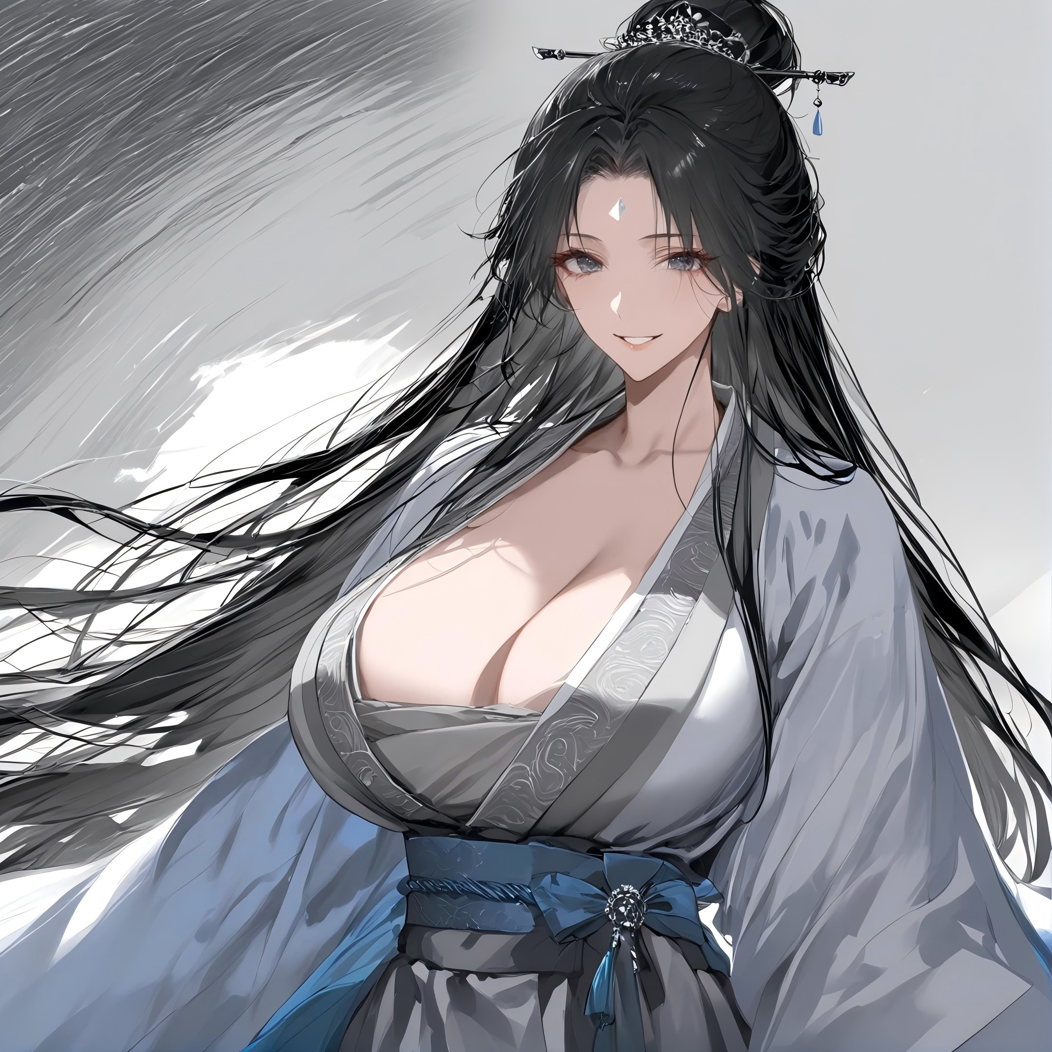 五官分明,眼神深邃迷人,带着一丝威严和高傲,却又不失妩媚风情。